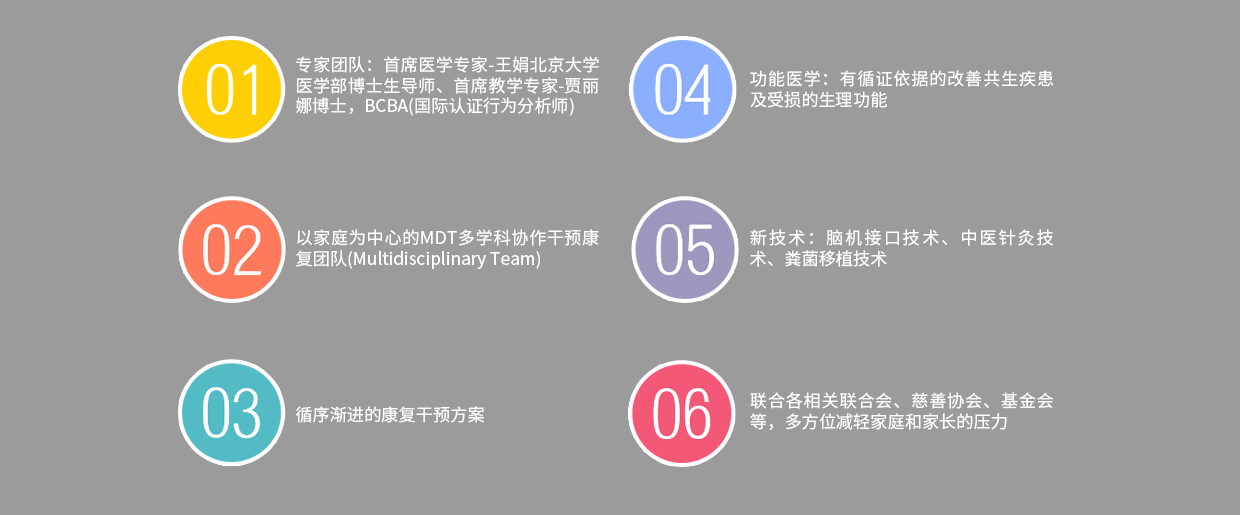 唯实慈云采用以孩子家庭为中心的MDT(Multidisciplinary Team) 干预康复团队,每个团队都有儿科医生、康复师、心理专家,共同负责患者干预的全过程,同时根据患儿的需要,邀请相应的儿科专家、中医师、针灸师及自然医学专家,共同为患儿制定综合干预计划,并随时关注患儿及家长的心理与情绪,使干预康复团队的干预方案能持续执行、及时调整,为患儿家庭提供全程的干预支持。